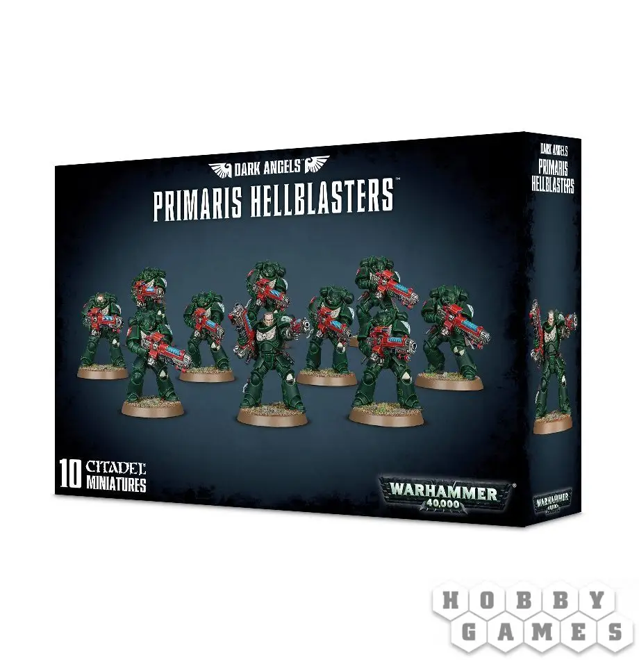 Набор содержит 292 детали для сборки 10 Primaris Hellblasters, включая два литника апгрейда Примарис Кровавых Ангелов, а также 10 подставок диаметром 32 мм.