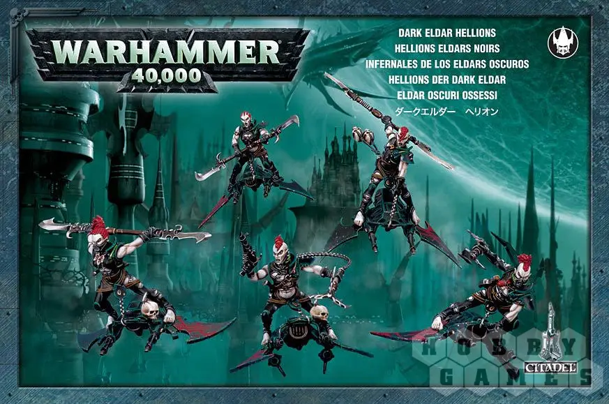 Гелионы (Hellions) – это пикирующие убийцы. Дикие Темные Эльдары, пикирующие на своих жертв в шквале заостренных клинков дабы вырвать ее из обманчивой безопасности. Гелионы мчаться в бой на скайбордах, антигравитационная доска на одного пилота, и накачавшись боевыми наркотикам. Они безумнейшие бойцы, носящиеся в внутри вражеских построений, выкрикивая проклятия и отрывая конечности своими ужасающими Хеллклейвами.