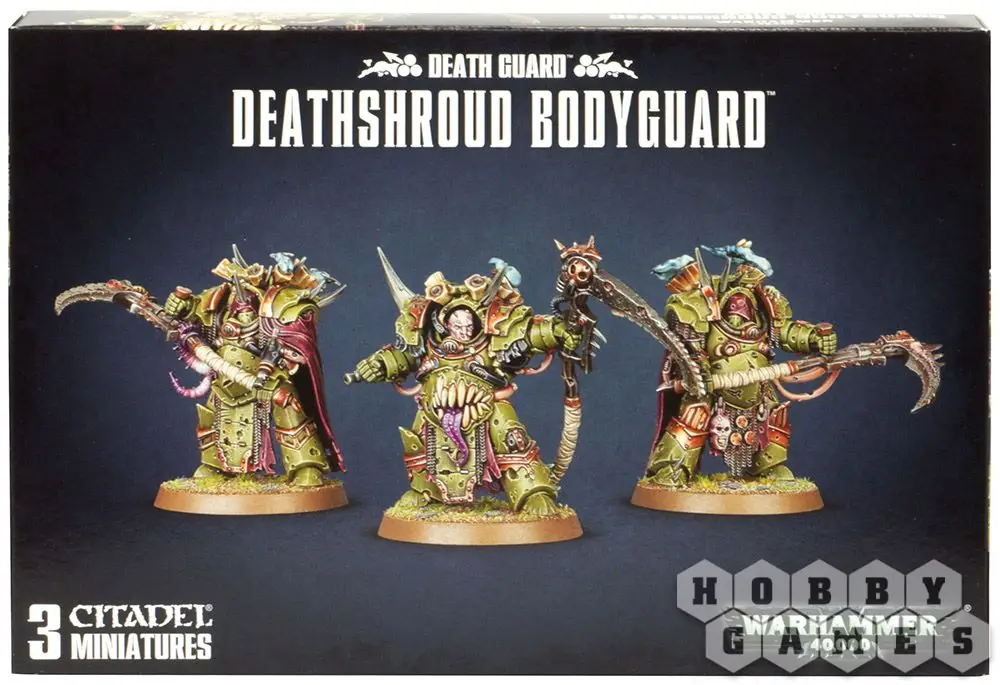 Щупальца, ржавчина, язвы, нарывы — громоздкая броня каждой из моделей покрыта ужасающими дарами Нургла. У каждого из Терминаторов в руках Жнец — огромная коса, воистину достойная космодесантника, несущего его. Также в вооружение Терминаторов входит источающая чуму перчатка (plaguespurter gauntlet), используемая для заражения врагов неисчислимыми хворями прямиком из котла Дедушки Нургла. Кстати, о Нургле — его печать можно найти на каждой из моделей, будь то в трех бубонах, в царапинах на броне или в расположении глаз. В наборе 7 вариантов голов (в шлемах и без) и дополнительная источающая чуму перчатка — для Избранного, который может носить сразу две.