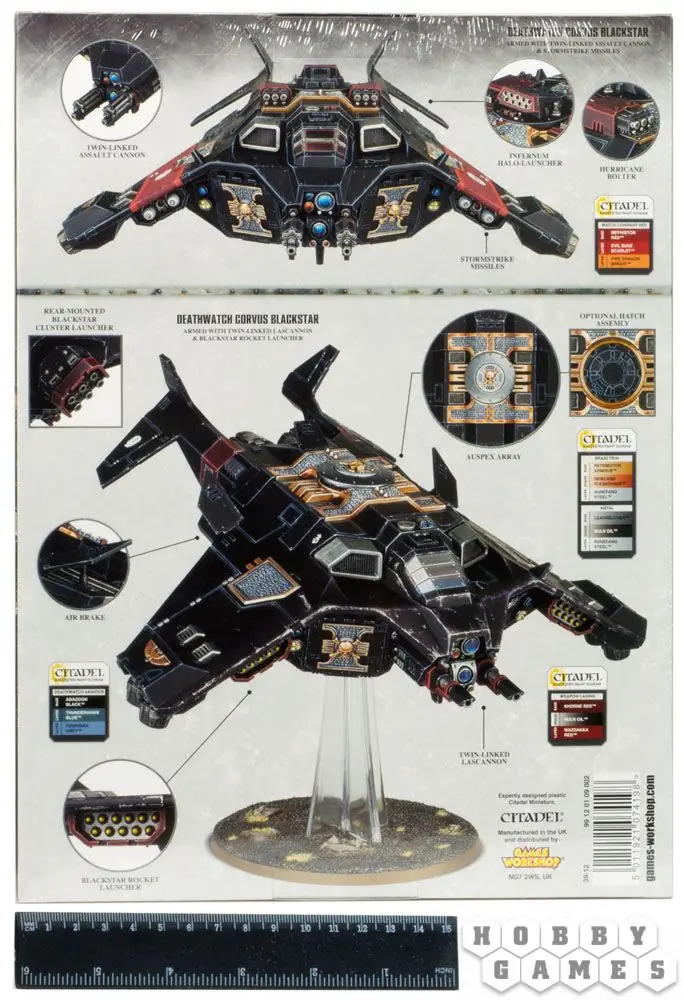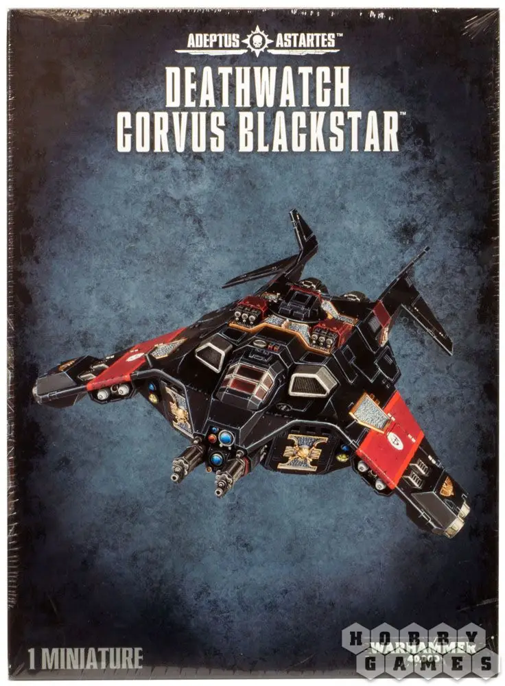 Намного более продвинутый, чем схожие летательный аппараты Империума, Корвус Блэкстар - подходящая машина для братьев Караула Смерти. Провозглашая смерть ксеносам с небес с помощью своего тяжелого вооружения, Корвус Блэкстар открывает люки, выпуская в бой свой смертоносный груз.