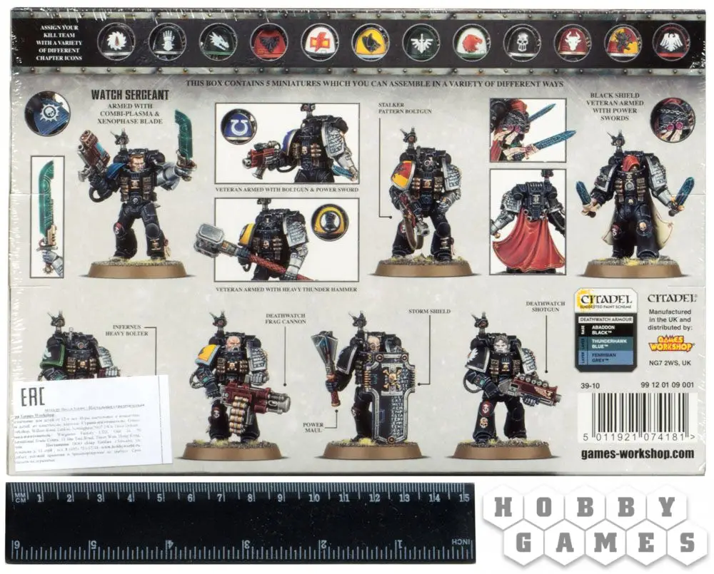 В данном наборе вы найдёте все необходимое для сборки Истребительной Команды Караула Смерти (Deathwatch Kill Team). Возможные варианты экипировки этих специалистов открывают огромные тактические возможности, а потому стоит вдумчиво изучить правила из Codex Deathwatch. Внутри вы найдёте детали для сборки пятерых первоклассно экипированных Космодесантников Караула Смерти, а также дополнительные компоненты, включающие целый арсенал различного оружия дальнего и ближнего боя. Ваши отряды будут готовы выполнить любую тактическую задачу! Набор включает в себя: