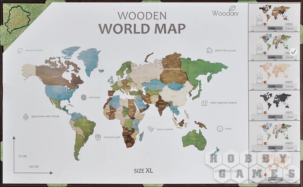 Пазл деревянный "Карта мира" не только украсит интерьер, но также поспособствует изучению земного шара, даст возможность отмечать страны, где Вы побывали и мечтаете побывать.