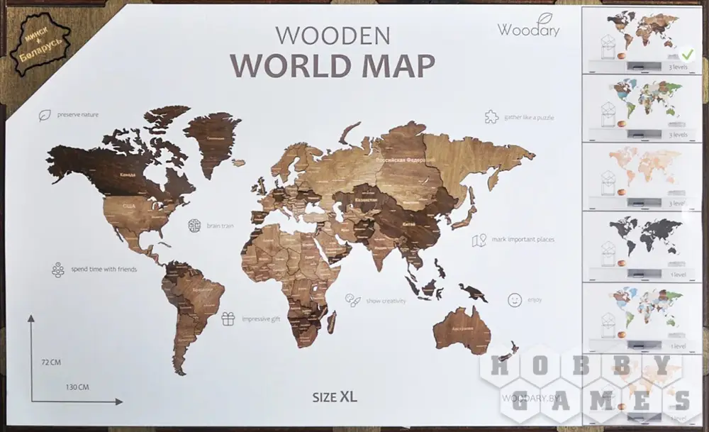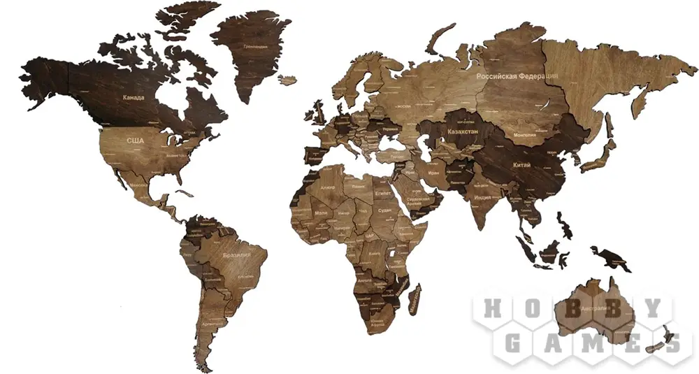 Пазл деревянный "Карта мира" не только украсит интерьер, но также поспособствует изучению земного шара, даст возможность отмечать страны, где Вы побывали и мечтаете побывать.