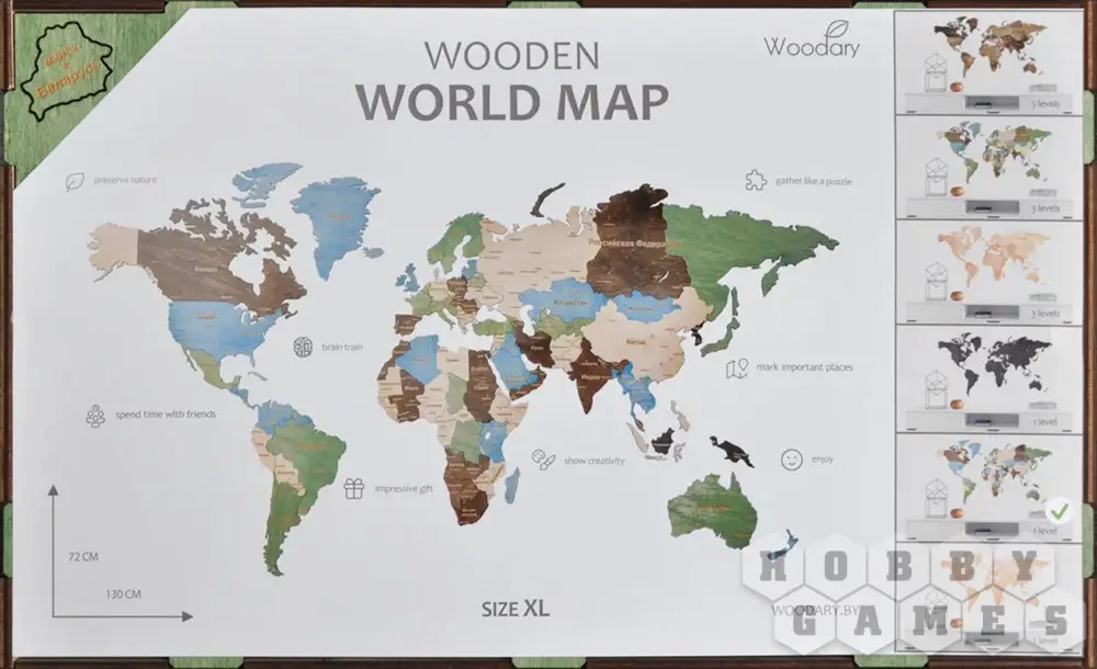Пазл деревянный "Карта мира" не только украсит интерьер, но также поспособствует изучению земного шара, даст возможность отмечать страны, где Вы побывали и мечтаете побывать.