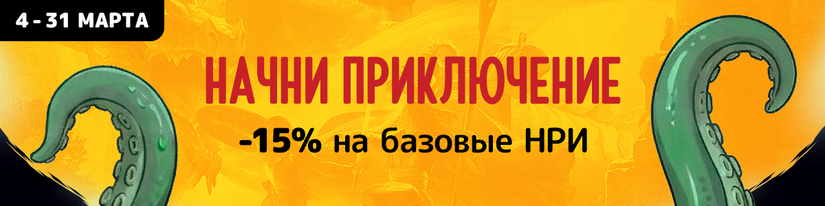 Внемли, путник! С 4 по 31 марта на стартовые наборы популярных ролевых систем действует скидка 15%! Кузница магии раскалилась добела. Выбирай своё приключение: