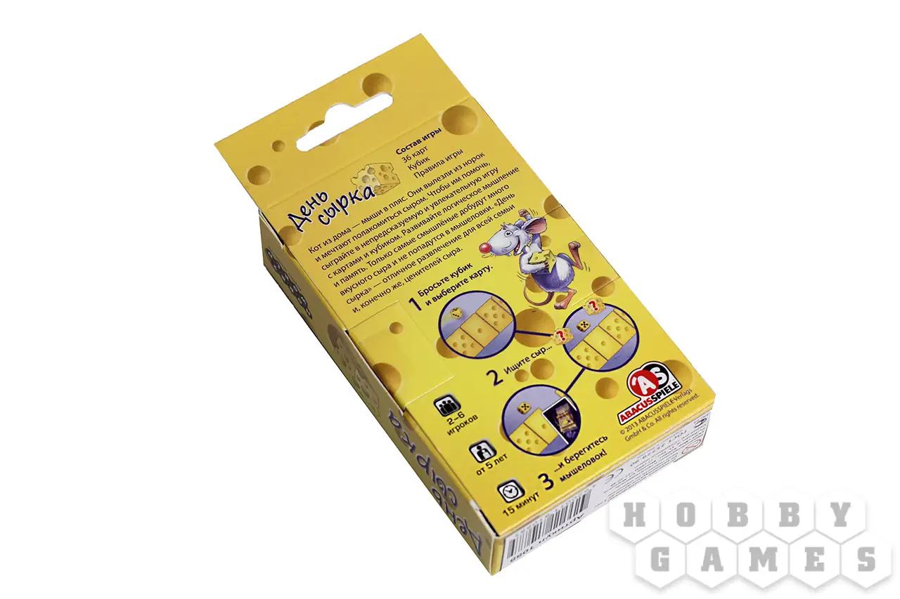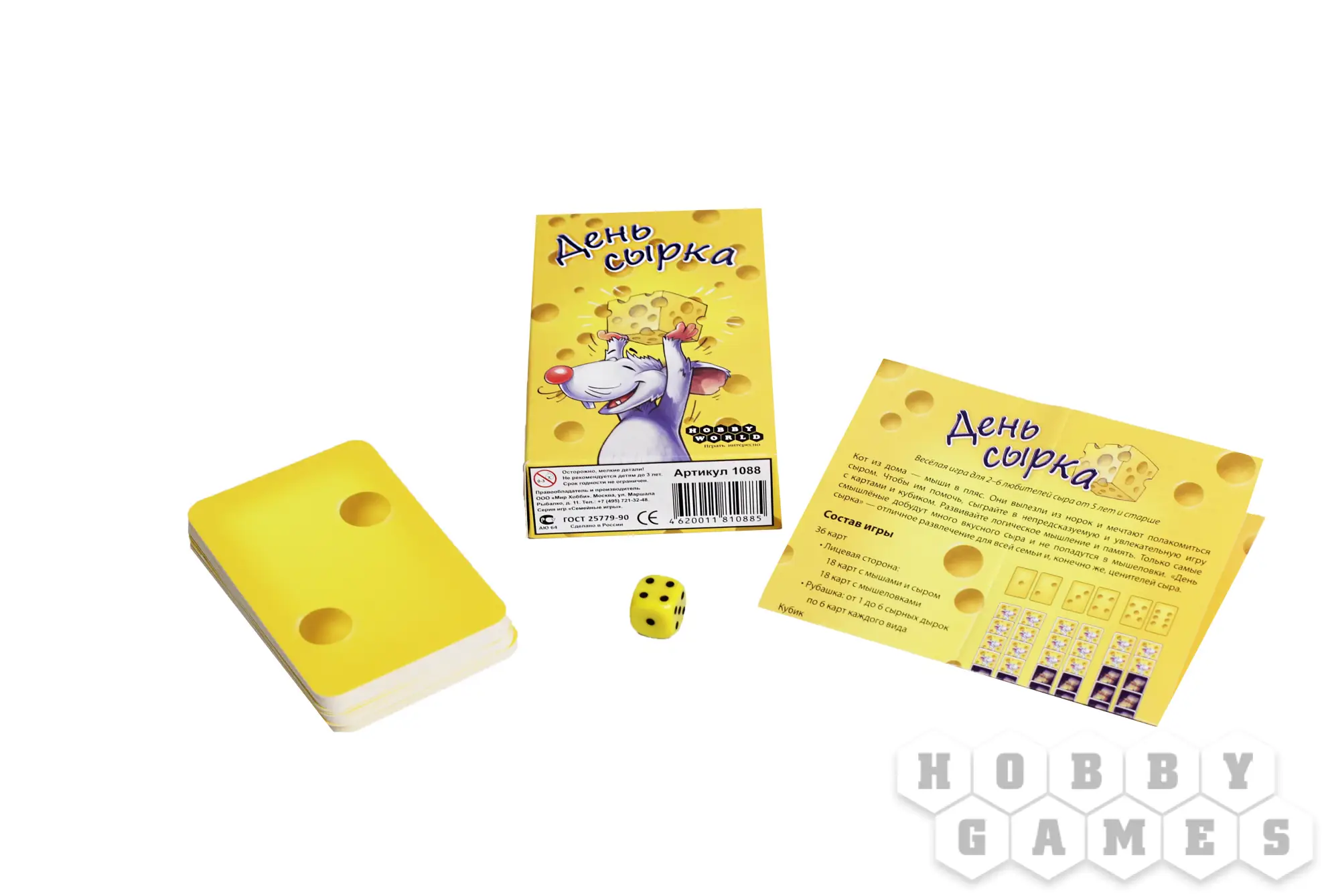 В настольной игре «День сырка» мышки соревнуются, кто же наберёт больше всех дырок от сыра? Игроки могут сами выбирать стратегию – действовать осторожно, разведывать территорию, и убедившись, что всё чисто – понемногу воровать сыр; или наоборот рискнуть и ринуться на огромный кусок швейцарского сыра… с большой вероятностью оказаться в мышеловке…