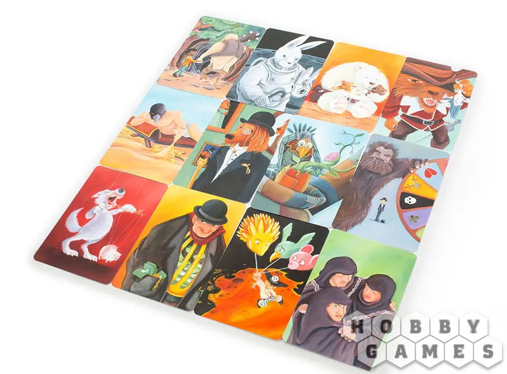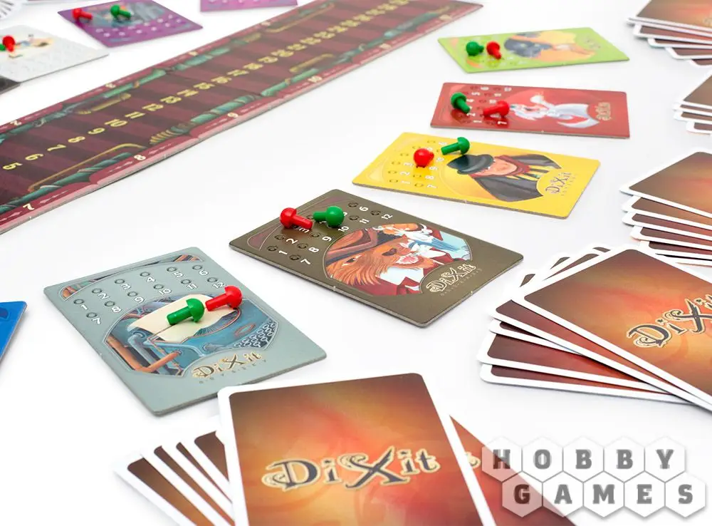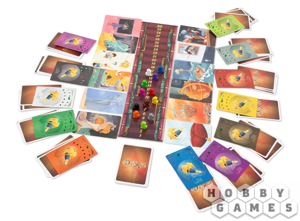 Диксит Вечеринка. Этот вариант игры рассчитан на 6-12 участников. Главное отличие от основного режима игры заключается в том, что рассказчик произносит фразу, которая непосредственно не относится к его картам
