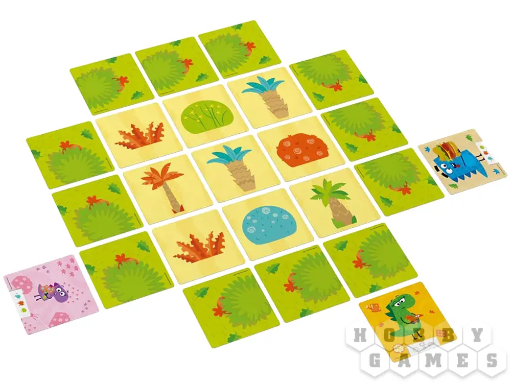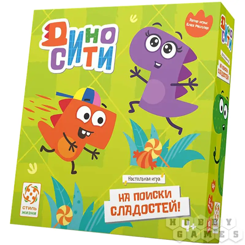 "Дино Сити: На поиски сладостей!" – это занимательная детская настольная игра на память с очень простыми правилами. Разложите карты леса в центре стола, чтобы получилась сетка поля размером 3x3. Затем с каждой стороны получившегося квадрата выложите по 3 карты конфет. Игроки кладут свою карту завра на одной из сторон получившегося поля и стараются пройти по прямой тропинке к противоположной стороне, чтобы получить карту конфеты. А сделать это можно только угадав, что изображено на обратной стороне карте леса. Угадали? Переходите к следующей карте. А если нет, то закройте карту, ход передаётся дальше. Запоминайте, что уже открывали! Так вам будет проще пройти по тропинке. Побеждает в игре тот сладкоежка, кто быстрее остальных соберёт 5 карт конфет.