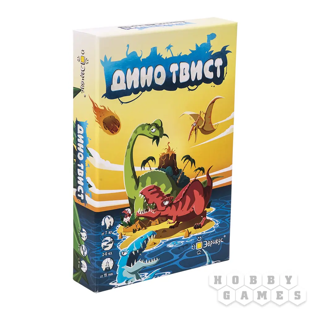 "Дино Твист" - динамичная карточная игра, в которой участники будут сражаться с динозаврами на острове Твист, а победив, переселять их на свои собственные острова.