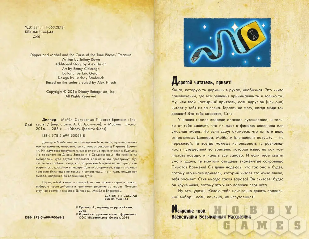 Перед тобой книга, в который ты сам можешь строить сюжет, выбирать места действия и принимать решения за героев. Путешествуй во времени вместе с Диппером, Мэйбл и Блендином!