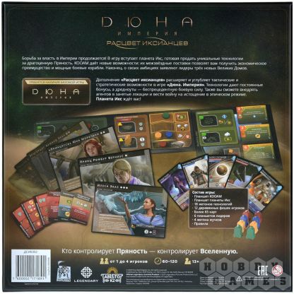 В дополнении "Дюна. Империя: Расцвет иксианцев" вы снова вступите в бой в качестве одного из лидеров Домов. Сможете ли вы расплатиться одним из самых ценных ресурсов, пряностью? Тогда народ “иксианцы” может предложить вам свои грандиозные передовые технологии. Самые богатые обитатели пограничных миров пренебрегают запретами один за другим, прислушиваясь только к своим стремлениям создать искусственный интеллект. Именно этот противостоящий фактор оказывает эффективную защиту от конфликта и вторжения на планету Икс.