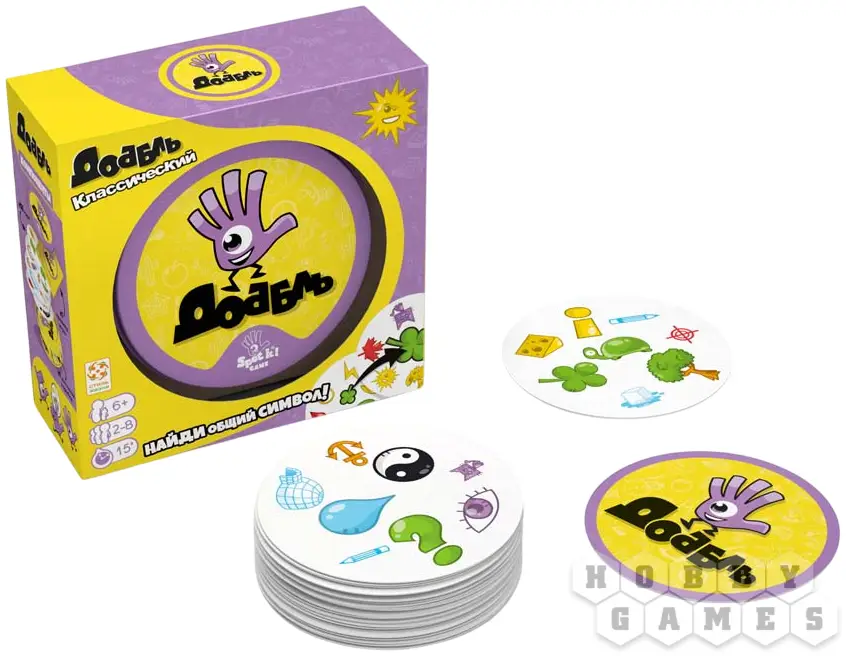 Доббль – это динамичная и увлекательная игра, где вам предстоит проявить наблюдательность и скорость реакции. У вас будет ряд карточек с изображениями – и несмотря на внушительное количество этих карточек, их можно поделить на пары, которые всегда объединяет всего один общий символ. Найти его первым – задача, которая не даст заскучать!