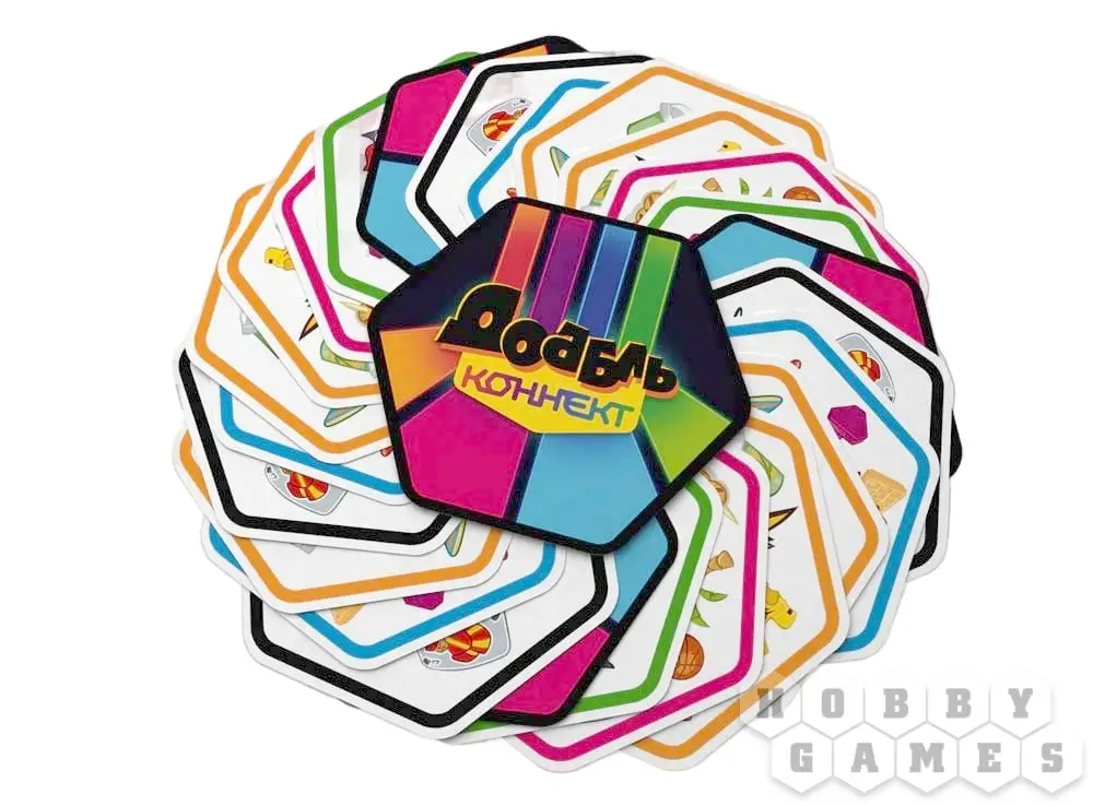 "Доббль: Коннект" – это увлекательная игра, требующая быстрой реакции и внимательности. Вы можете играть как в команде, так и в одиночку, но принцип остаётся прежним – найти совпадение на двух карточках быстрее всех. Постарайтесь выложить 4 карты своего цвета в ряд, чтобы одержать победу в раунде. И самое интересное, что в "Доббль: Коннект" творится полный хаос, отсуствует очередность ходов, все игроки действуют одновременно!