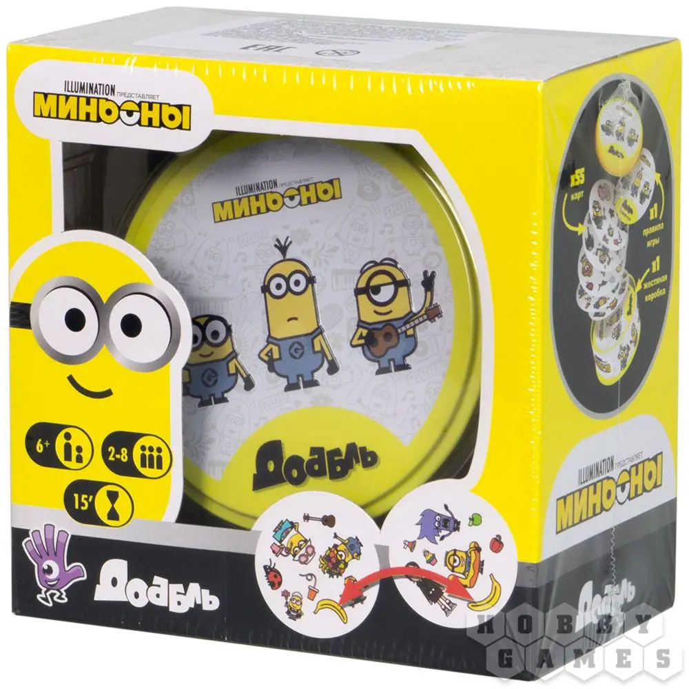 "Доббль: Миньоны" – это настольная карточная игра для детей или всей семьи с простыми и забавными правилами. Игра испытывает вашу скорость реакции и внимательность, ведь для победы вам нужно как можно скорее находить карточки с совпадающими символами. Все миньоны похожи, но отличаются в каких-то мелочах. Сможете быстро различить их?