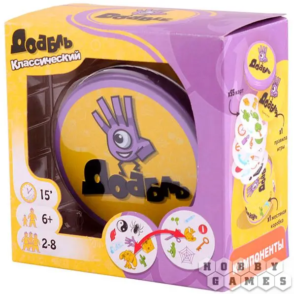 Dobble ("Доббль") – весёлая и быстрая карточная игра на внимание и реакцию. Игра рекомендована для детей старше 6 лет, но в неё с удовольствием сыграют и взрослые. Малыши и родители могут сразиться в настольном бою, причем дети нередко одерживают победу.