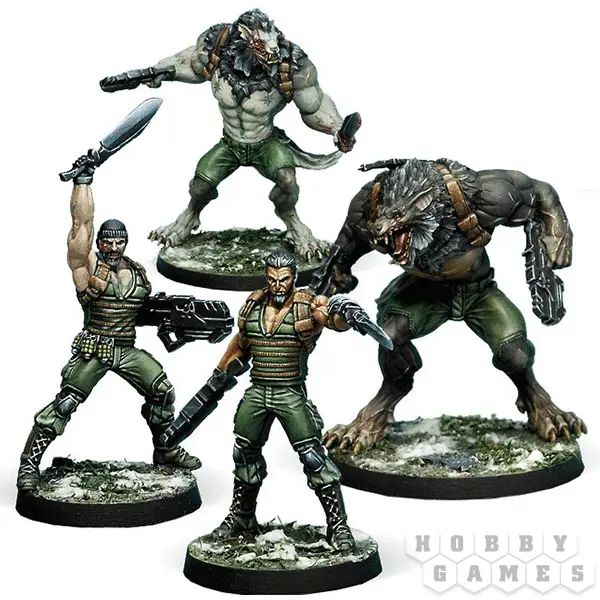 Новёхонький комплект боевых единиц Infinity и крайне ожидаемая переработка облика! Известно, что Dog-Warriors обладают значительно более низким весом при расчёте баллов стратегической игры, и стратеги Ariadna часто привлекают их в бой парами, поскольку эти персонажи являются непревзойденными мастерами рукопашной схватки. Именно поэтому они поставляются двойными комплектами (два Dog-warriors и два Dogfaces), дабы стратеги могли оптимизировать тактику. Тем не менее, взглянув на великолепное переосмысление фигур, желание возникнет моментально, ведь вам не терпится обладать этими дикими бойцами, чьи черты напоминают оборотней! Ощутите неукротимую звериную дикость Dog-Warriors!
