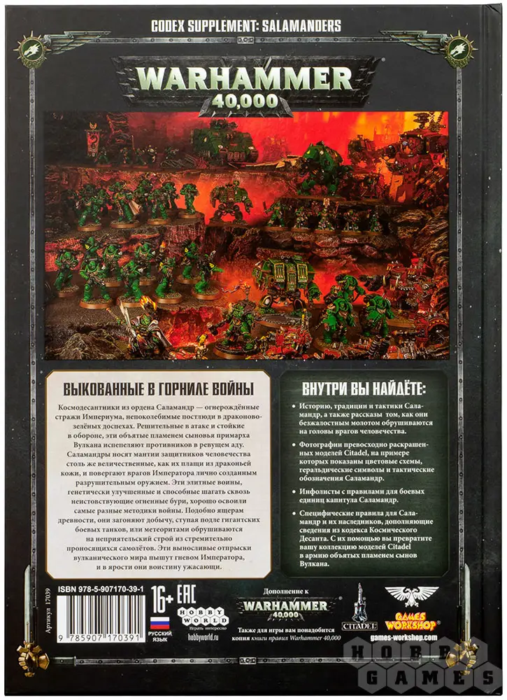 В этом приложении к кодексу Космического Десанта шестьдесят четыре страницы, на которых находится всё, что вам необходимо для раскрытия потенциала Саламандр в бою, а также захватывающие истории и иллюстрации, которые вдохновят вас на создание собственной коллекции.