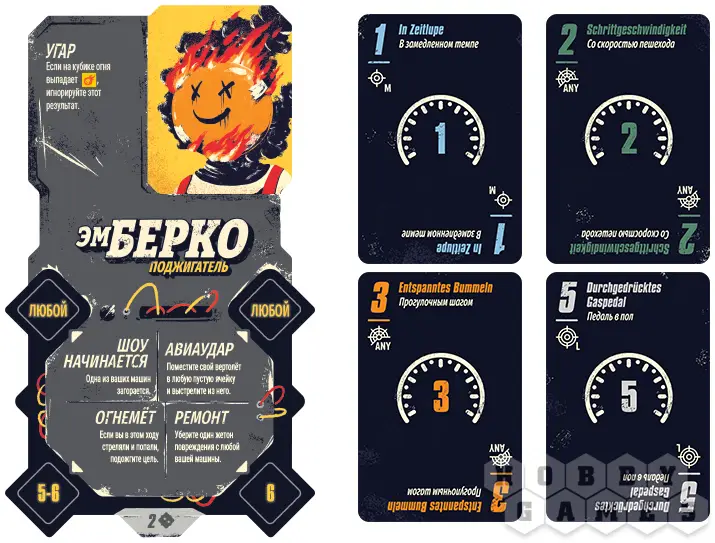 Вам также доступна стрельба – атака по транспорту, находящемуся в переднем секторе вашего авто. Успешность атаки проверяется с помощью кубика. С помощью стрельбы можно вывести из строя чужие машины. Если у игрока не останется ни одной исправной машины, он выходит из игры.