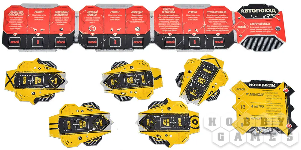 Вам также доступна стрельба – атака по транспорту, находящемуся в переднем секторе вашего авто. Успешность атаки проверяется с помощью кубика. С помощью стрельбы можно вывести из строя чужие машины. Если у игрока не останется ни одной исправной машины, он выходит из игры.