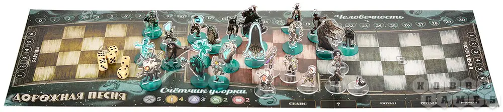 Перед тем как отправиться в путешествие, соберите своих бродяг – выберите их карты, поставьте фигурки на тёмное поле поезда и вручите каждому по три заветные монеты. Наполните старый узелок таинственными жетонами предметов – кто знает, что попадётся в дороге? Затем откройте книгу сценариев на первой истории – "Убежище от бури" – и расставьте призраков, объекты и жетоны событий так, как велит легенда.