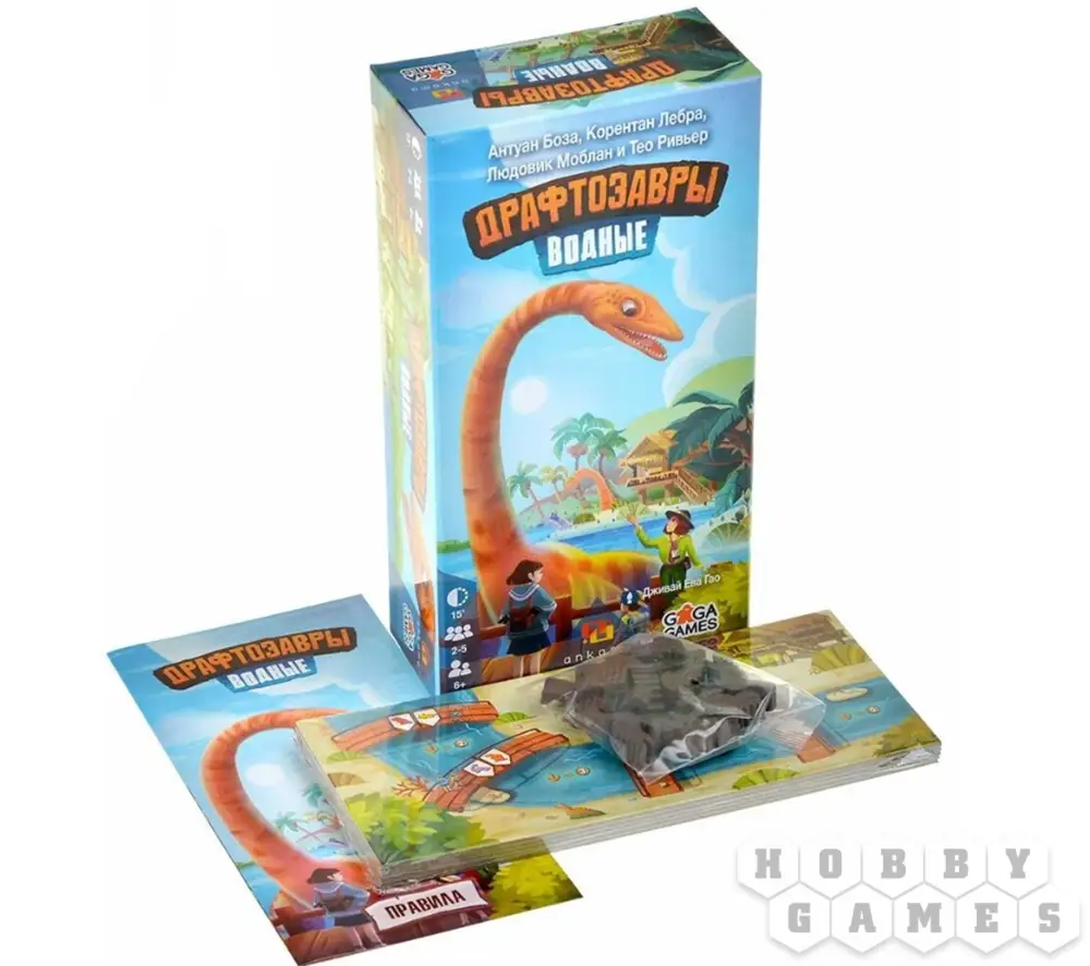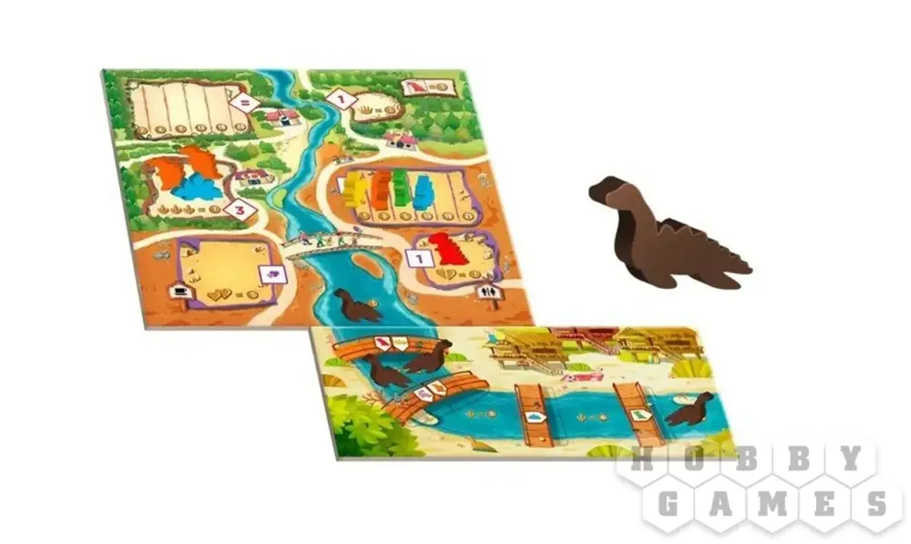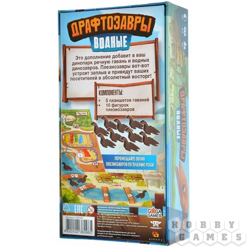 Яркое дополнение к настольной игре "Драфтозавры" расширит ваши возможности и сделает ваш динопарк еще привлекательнее для посетителей. Новая двусторонняя доска добавляет вашему уже существующему парку речную зону, кторую можно заселить новым видом динозавров - плезиозаврами. Чем дальше вы сможете продвинуть новых питомцев, тем больше победных очков получите.
