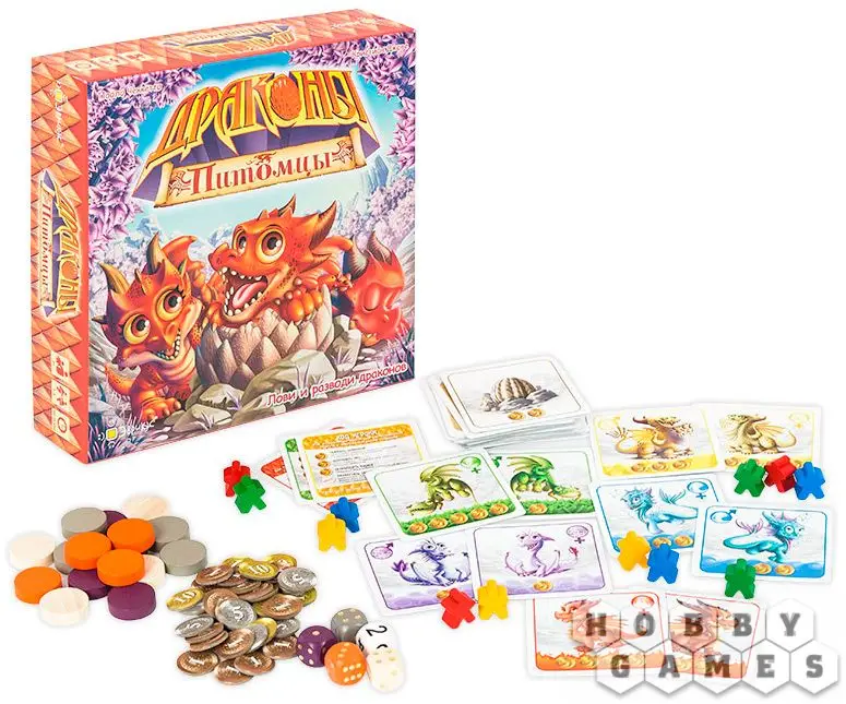 В настольной игре "Драконы-питомцы" вам предстоит иметь дело с их последней разновидностью – дружелюбными и весёлыми дракончиками. Их нужно будет разводить, чтобы победить на конкурсе драконьих заводчиков. Отправляйте охотников в лес за дикими ящерами, ищите пару для своих питомцев и зарабатывайте золотые монеты. В конце партии победит самый богатый заводчик дракончиков – кто же им станет?