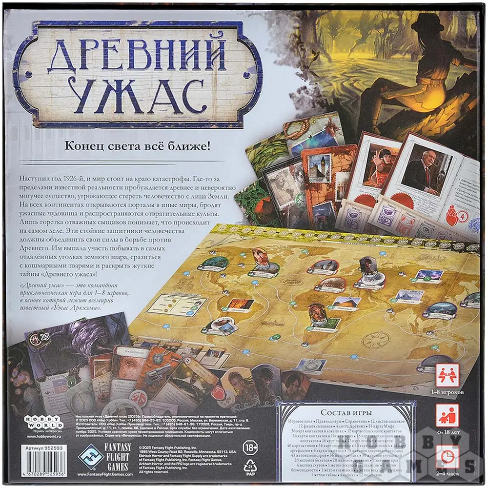 Эпическая настольная игра "Древний Ужас" создана специально для любителей серии "Ужаса Аркхэма", а также фанатов мистики и произведений Лавкрафта. Игра окунёт Вас в мрачную атмосферу, где каждый Ваш шаг влияет на будущее всего мира. Вы сможете путешествовать по всему земному шару, попытаться расшифровать тайные послания и победить потусторонних тварей. Игра имеет несколько уровней сложности и подойдёт как заинтересовавшимся новичкам, так и бывалым сыщикам. А каждый из Древних имеет уникальную колоду с загадками и свои характеристики. Сможете ли Вы теперь безмятежно спать по ночам, зная, что Древний Ужас почти проснулся?