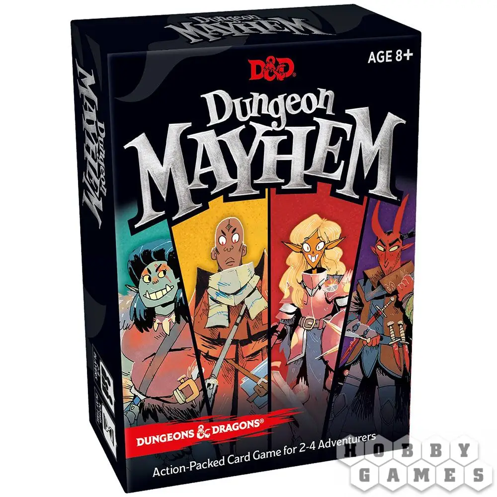 В карточной игре Dungeon Mayhem Вам предстоит сыграть за одного из четырех смелых, но причудливых персонажей – варвара, паладина, разбойника или волшебника, которые сражаются в подземелье, полном сокровищ! Магические ракеты разлетаются, двойные кинжалы бросаются, а шипастые щиты защищаются. Проще говоря, теперь всё зависит от Вас, чтобы доказать, что у вашего искателя приключений есть сила принести домой почёт, славу, ну, и, конечно, добытые богатства!