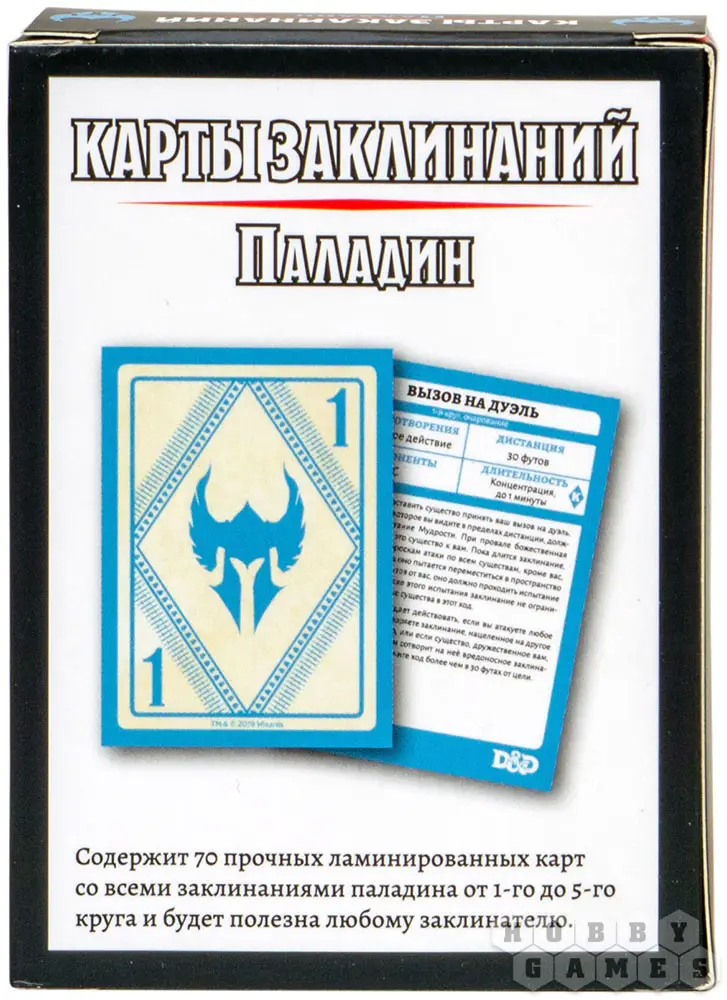 Паладин – это не простой последователь божества, он наделён божественной магией и обладает отличными бойцовскими качествами. Вся его магия содержится в этом наборе карт заклинаний, которые класс Паладин использует в ролевой игре Dungeons & Dragons пятой редакции.