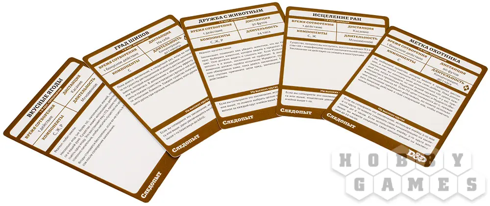 Они великолепно знают природу, а поэтому могут и творят заклинания. В выборе заклинаний они делают ставку на скорость и незаметность, чтобы помочь себе в охоте. Вся магия следопытов содержится в этом наборе карт заклинаний, которые класс Следопыт использует в ролевой игре Dungeons & Dragons пятой редакции.