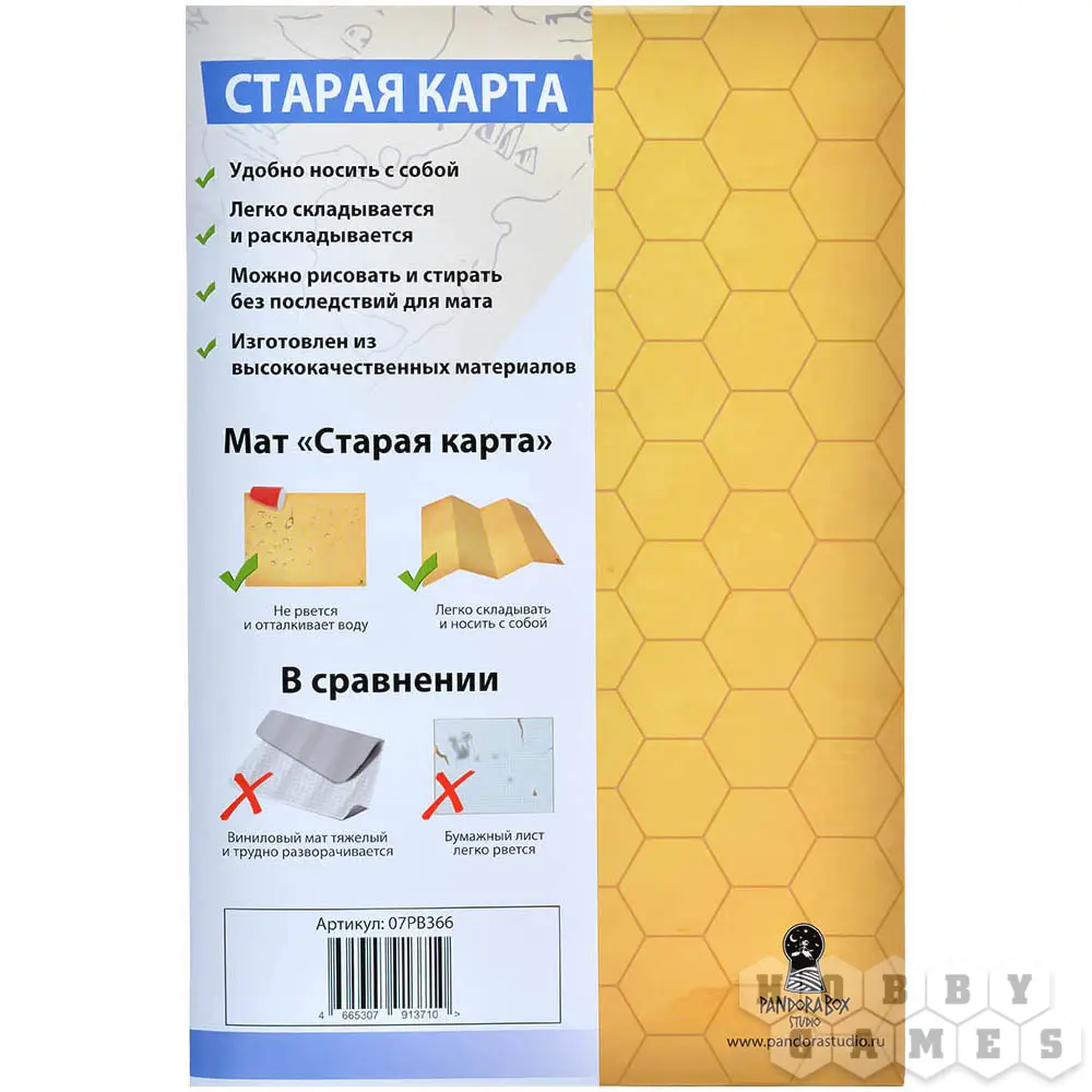 Этот игровой мат – отличное приспособление для настольных ролевых игр. Деталей ландшафта всегда будет недостаточно, и неплохой выход из этой ситуации – игровое поле, на котором можно нарисовать всё необходимое. Двухсторонняя ламинация мата не только защищает его от воздействия воды или грязи, но и позволяет бесследно стирать нарисованные неперманентным маркером схемы ландшафта. Для удобства транспортировки его легко сложить до формата А4. На одной стороне мата нанесены гексы, а на другой – сетка. Это очень удобно и повышает области использования данного мата.