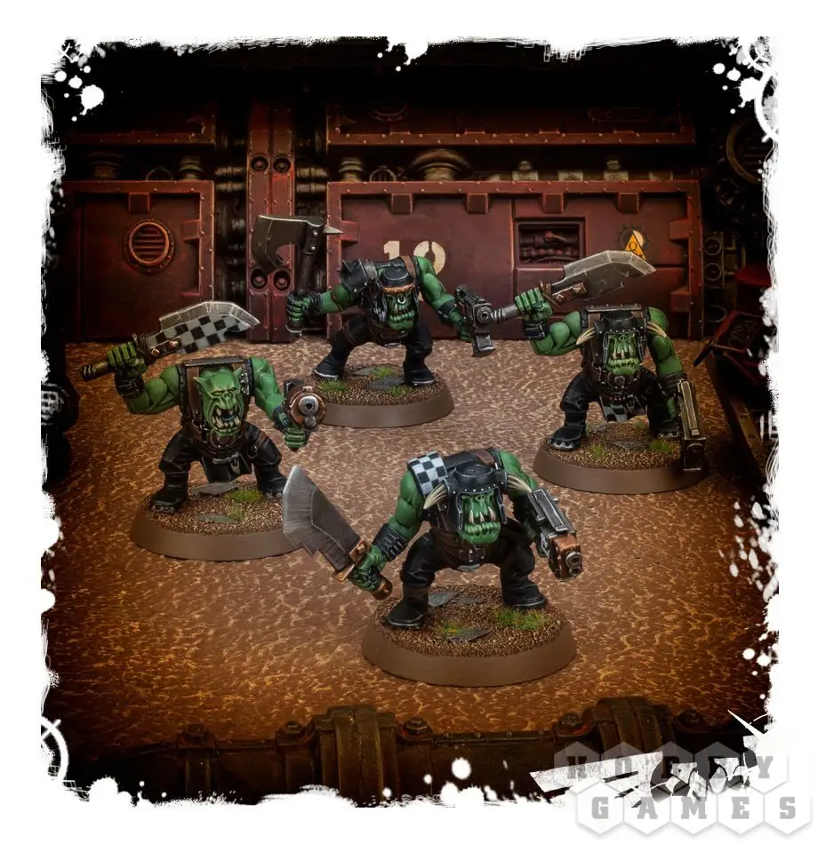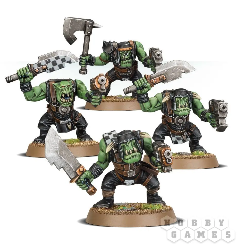 Парни – плоть и кровь орочьей армии, основной костяк любого ВАААГХА. Крепкие парни, целеустремлённые бойцы, которые беснующимся зелёным валом завывающей ярости обрушиваются на позиции врага. Орочий пацан сперва из верного стреляла отстрелит врагу всё, что торчит, а потом распополамит его тяжёлым отточенным рубилом.