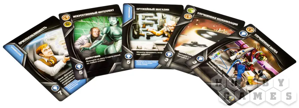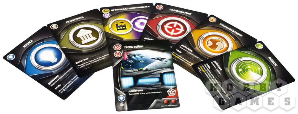 Фаза роли — в эту фазу вы выбираете одну из шести ролей (колонизация, наука, производство, продажа, поиск, завоевание), берёте карту из соответствующей зоны и применяете эффект этой роли. При этом роль можно и нужно усилять, для чего существует несколько способов, например, розыгрыш карт с руки с символами этой же роли. После выбора роли ваши соперники должны решить, повторяют ли они роль или отказываются от неё. При отказе игрок добирает карту себе в руку, а при повторе игрок долен сыграть карту с аналогичным символом или использовать такую карту, находящуюся в его империи. Конечно, он получит все эффекты от этой роли, включая усиления;