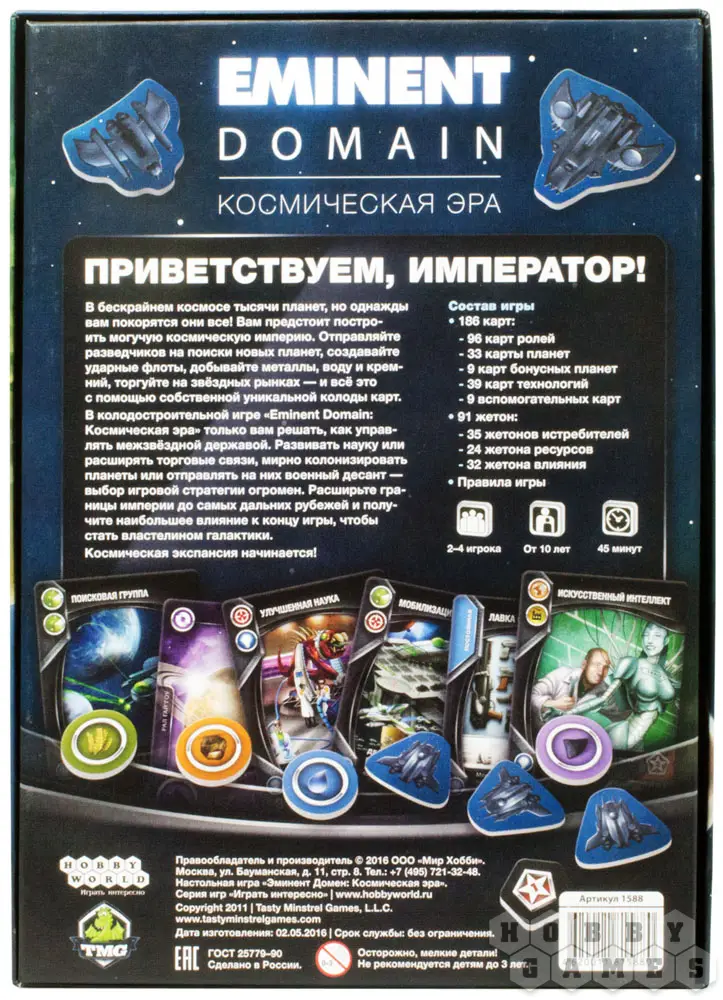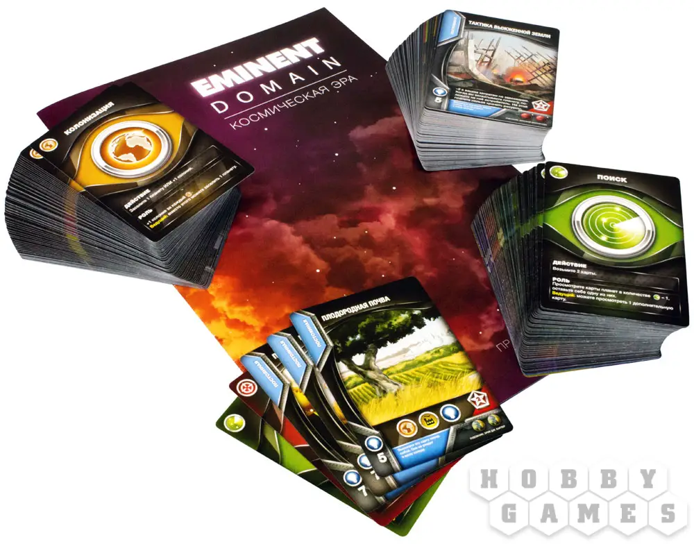 Настольная игра «Eminent Domain: Космическая эра» относится к жанру колодостроительных, а её действие происходит в далёком будущем и в далёких галактиках. Вам предстоит отстраивать целую звёздную империю, мудро выбирая между различными стратегиями. Все игроки начинают в равных условиях с одинаковыми колодами, но постепенно, в зависимости от вашего выбора, колоды будут становиться всё более уникальными и интересными, что показывает на развитие и прогресс вашей империи в ту или иную сторону. Чем больше внимания вы уделяете одной из ролей, тем более эффективной и прибыльной она становится. На что вы сделаете упор? Зависит только от вас.
