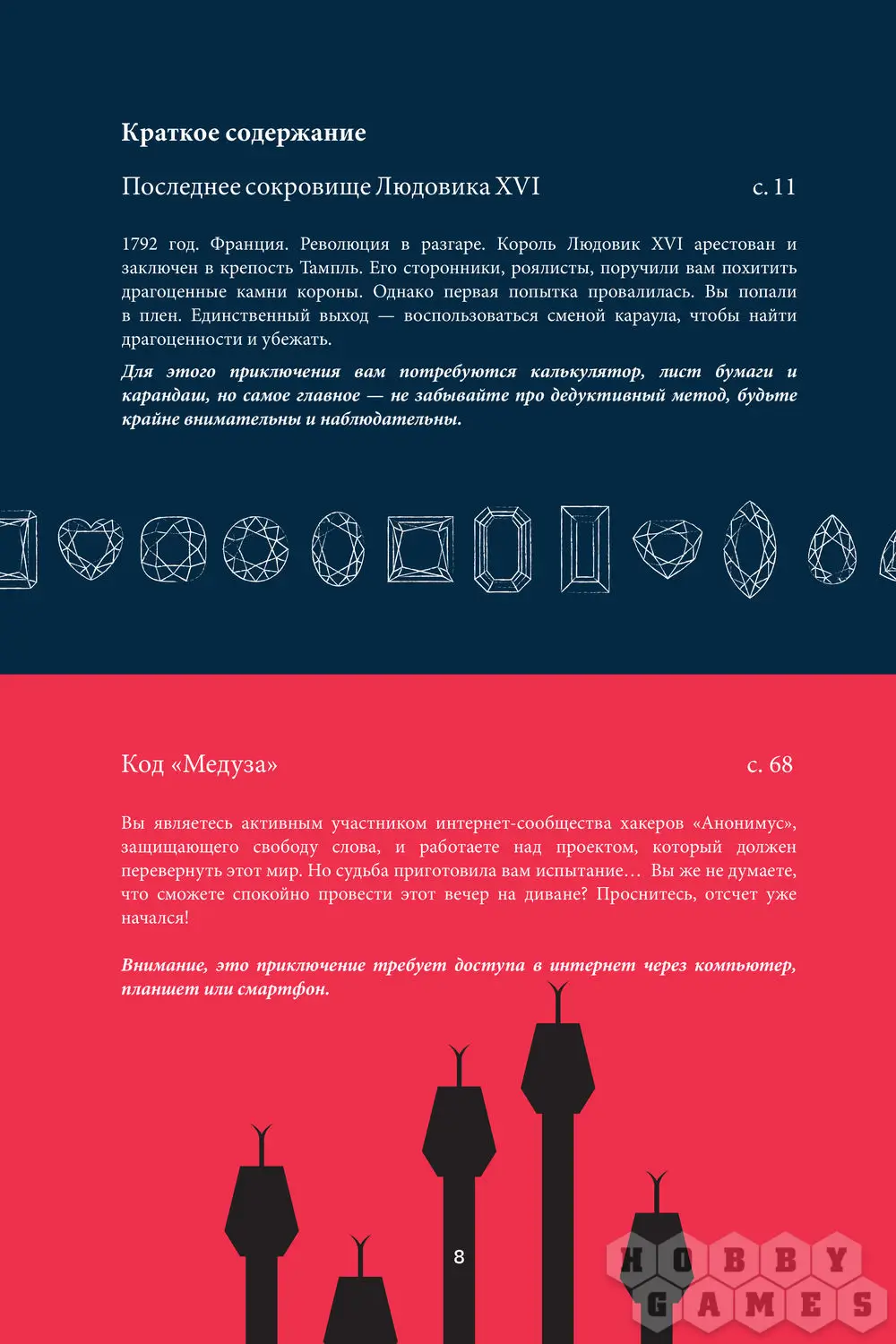 Эта книга – итог большой работы. Для вас приготовлены три увлекательных приключения. Надеемся, вы получите удовольствие и отлично развлечетесь, разгадывая загадки и выбираясь из расставленных ловушек!