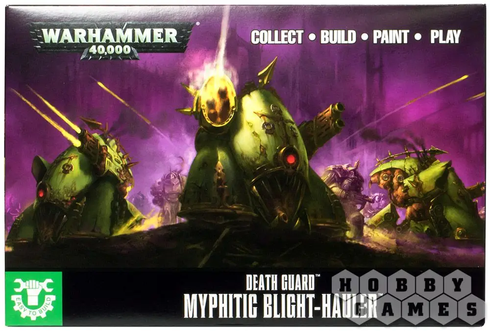 Рвущаяся в бой на трёх сочленённых гусеницах, Myphitic Blight-hauler — легкая демоническая машина, которая обеспечивает Death Guard мощной огневой поддержкой, где бы она ни потребовалась. Эта странная боевая машина, похожая на Bloat-drone, лишенный своих турбин, несет на своем панцире тяжелое вооружение. Её проржавевшие бронированные пластины могут блокировать огромный урон, а губчатые участки плоти — поглощать ужасные повреждения.