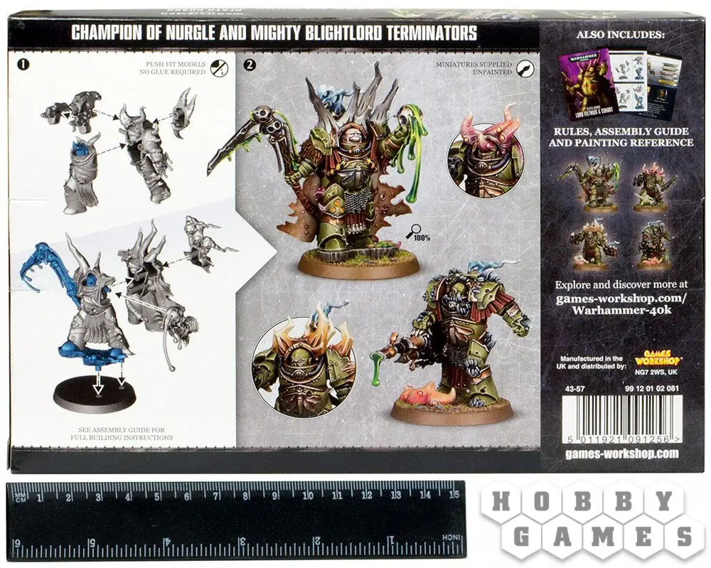 Его сопровождают 3 чумных последователя - тяжеловооруженных бойца, готовых пожертвовать всем ради защиты своего повелителя. Они вооружены с помощью combi-bolter, bubotic axe, а также plaguespewer.