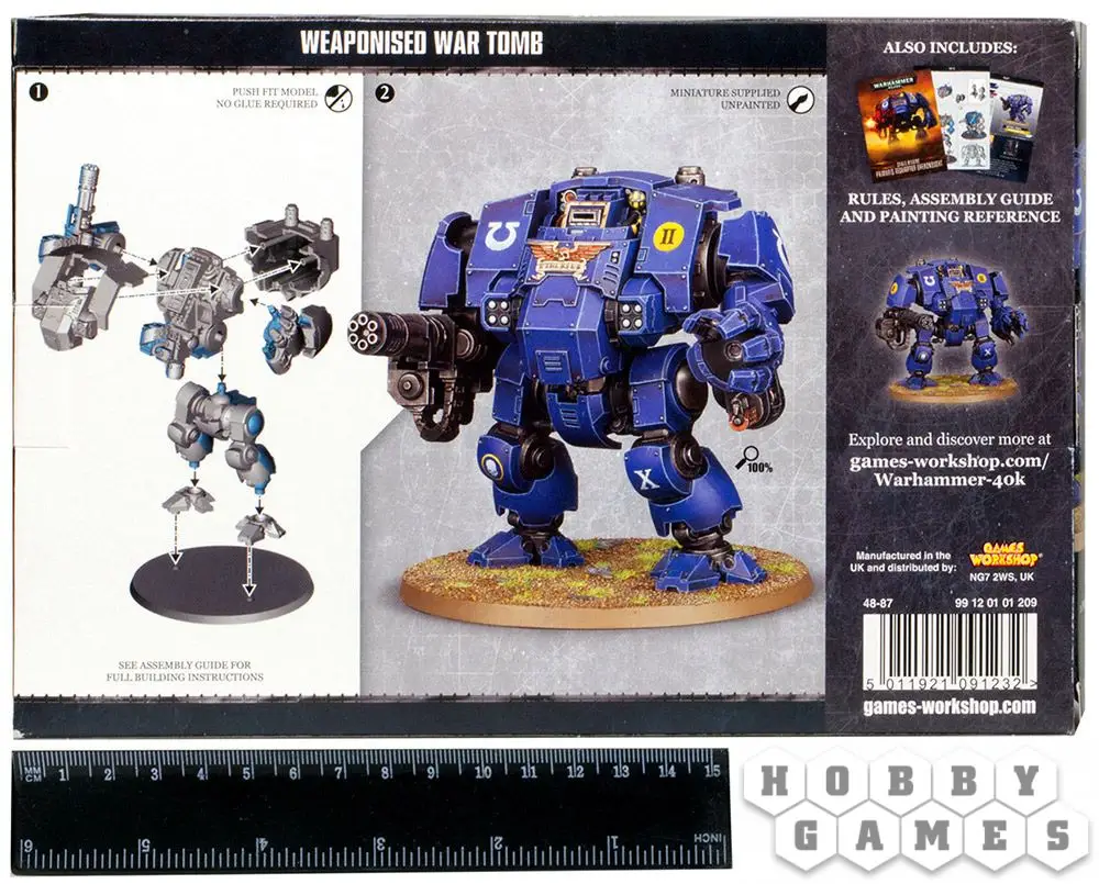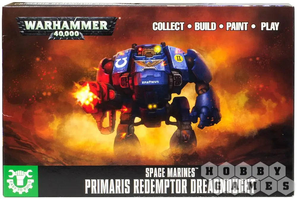 Redemptor Dreadnought - это невообразимо агрессивная модель, которая выглядит на игровом поле как неприступная крепость, по размерам превосходящая классического Дредноута и в два раза выше Primaris Space Marines. Имеет на вооружении Redemptor fist и heavy flamer в левой руке, и heavy onslaught gatling cannon в правой.