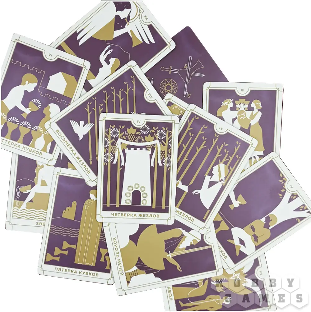 Небольшая колода Таро с понятными минималистическими рисунками – то, что порадует любого предсказателя Cудьбы. В наборе есть всё, что понадобится и опытному тарологу, и новичку. 78 необыкновенно стильных карт в изящном оформлении содержат все классические образы, сюжеты и символику привычного Таро Артура Уэйта. Карманное руководство поможет в особо сложных случаях, а 2 карты-памятки просто необходимы тем, кто только начинает постигать тайны Мироздания. Особая прелесть этого варианта Таро – небольшой размер. Карты легко помещаются в женскую сумочку, а красивый удобный футляр с магнитной застежкой привлекает внимание.