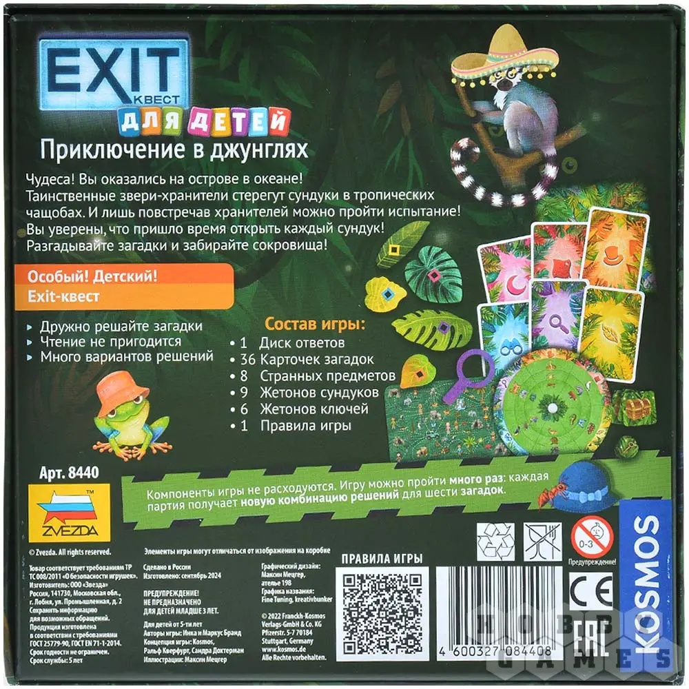 Серия "EXIT-Квестов" позволит вам, не выходя из дома, окунуться в мир квестов в реальности – невероятно популярного развлечения среди людей разных возрастов. А теперь поломать голову над задачкой, хорошенько при этом повеселившись, смогут и самые юные любители приключений и экстрима. Ваша задача – решить все загадки и успешно выбраться из квеста! Самое время приступать!