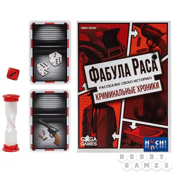В карточной настольной игре "Фабула Раса: Криминальные хроники" участники по очереди выкладывают карты с изображениями и рассказывают свою версию случившегося. Чтобы правильно изложить историю, необходимо запомнить все карты, выложенные другими игроками. В случае успеха вы получаете карту в награду. Побеждает тот, кто первым соберёт определённое количество карт награды.