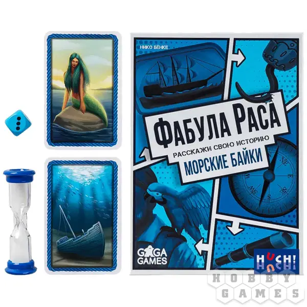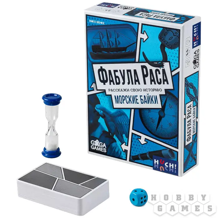 В карточной настольной игре "Фабула Раса: Морские байки" участники по очереди выкладывают карты с изображениями и рассказывают о своём морском приключении. Чтобы правильно изложить историю, необходимо запомнить все карты, выложенные другими игроками. В случае успеха вы получаете карту в награду. Побеждает тот, кто первым соберёт определённое количество карт награды.