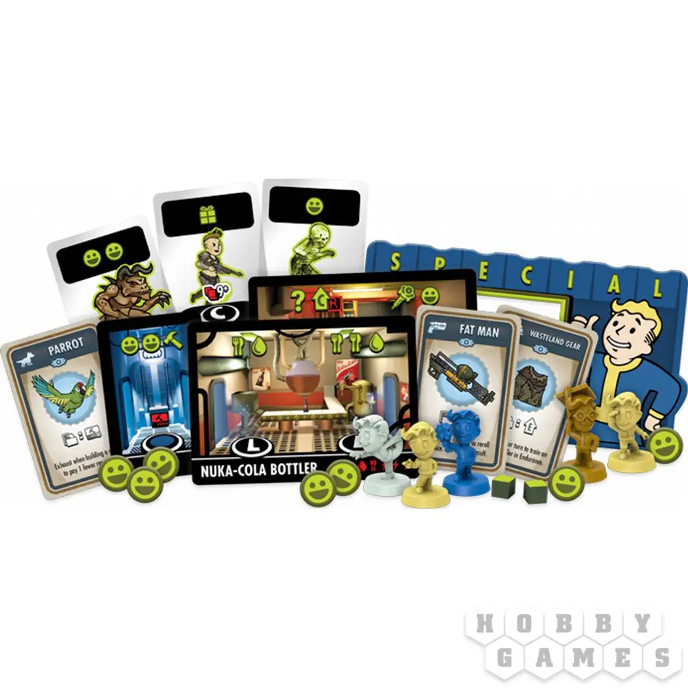 Как и в компьютерной игре, в настольном Фоллауте участники управляют героями, исследующими Убежище и примыкающие к нему Пустоши (Wastelands), собирают полезные предметы и сражаются с монстрами. На выбор представлено пять персонажей с уникальными способностями: упырь лечится радиацией, супермутант от облучения получает победные очки, а изгнанный из Братства обладает прочной бронёй. В наборе представлено четыре сценария, которые уже могут быть знакомы фанатам компьютерной версии Fallout: столица Пустоши (Capital Wasteland), Питт (Pitt), содружество (Commonwealth), далёкая гавань (Far Harbor). Чтобы победить, нужно получить определённое количество очков влияния, которые можно заработать выполнением целей, квестов и другим.