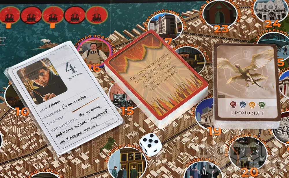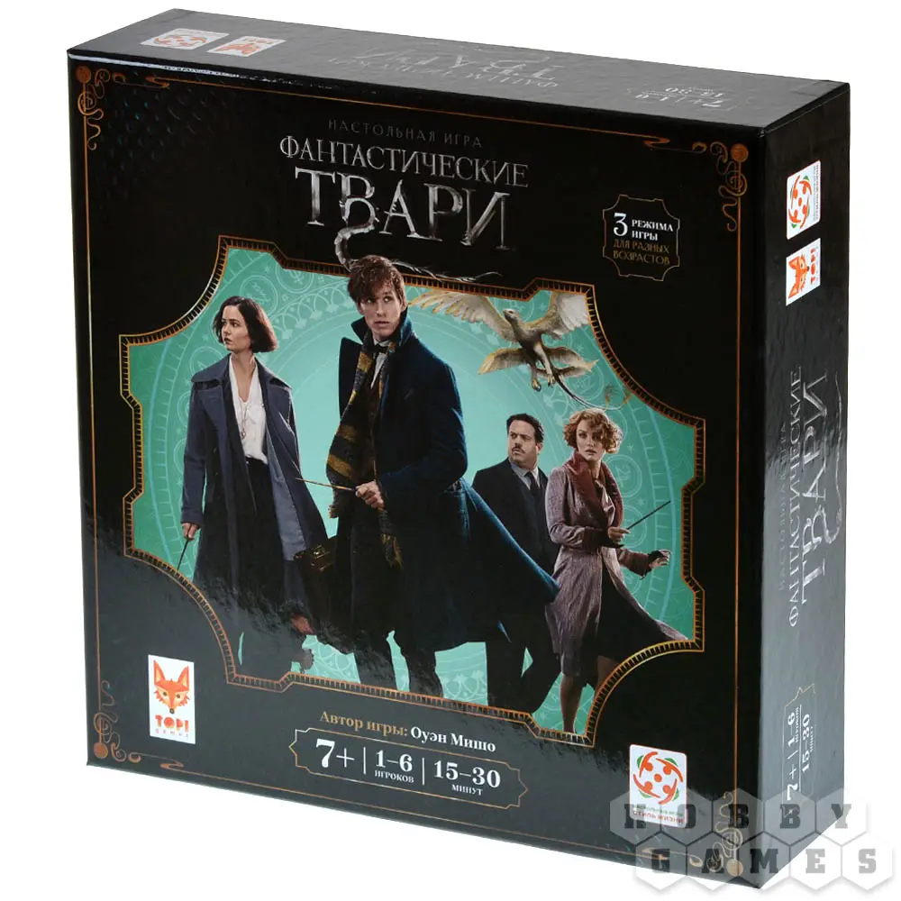 Настольная игра “Фантастические твари” предлагает вам окунуться в мир Нью-Йорка прошлого века, по которому разбежались магические существа. Попытайтесь поймать их всех! У вас в арсенале магические заклинания и захватывающие карты событий, которые привносят в игру непредсказуемые сюжетные повороты!