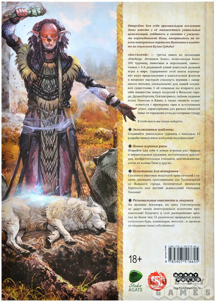 "Бестиарий" – третья книга серии "Fateforge: Летописи Эаны", представляющая собой обширный справочник, в котором содержится информация о более 200 уникальных существах. Этот сборник совместим с 5-й редакцией Dungeons & Dragons, популярной ролевой системы. Здесь вы найдёте новых, неповторимых монстров, которые дополнят и разнообразят привычное фэнтезийное окружение. Хотели узнать ещё больше о загадочных уголках Эаны? "Бестиарий" вам в этом поможет – теперь области от Вольного города до ледяных просторов Гемонии станут ещё более знакомыми и изведанными. А ещё вы получите представление об источниках угроз, характерных для различных регионов! Эта книга – незаменимый инструмент для мастеров и игроков, которые хотят вдохнуть жизнь в свои истории и расширить границы фэнтезийного мира!