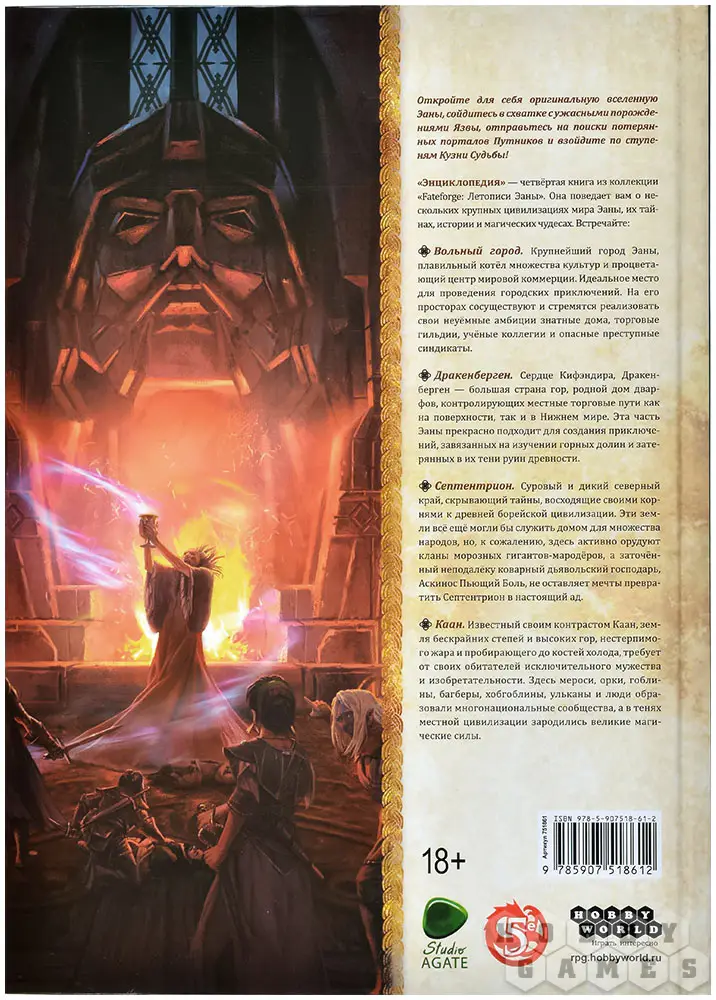 "Энциклопедия" – ещё одна книга из серии "Fateforge: Летописи Эаны", четвёртая по счёту. Знакомство с увлекательным миром Эаны продолжается: внутри вы найдёте подробные описания нескольких крупнейших цивилизаций Эаны. Вы узнаете больше не только об истории их становления, но также о магии, легендах и секретах, давно ставших частью этой удивительной вселенной. Теперь мир, который вы, отважные путешественники, исследуете, станет ещё более красочным, а приключения – захватывающими!