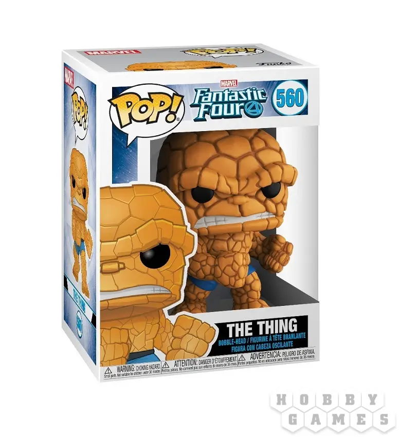 Фигурка Funko POP! Bobble Marvel Fantastic Four The Thing 44988. Существо / The Thing — вымышленный персонаж, супергерой вселенной Marvel, член Фантастической четвёрки. Однажды Рид Ричардс попросил Бена поучаствовать в научной экспедиции в космосе в качестве пилота. Но корабль, на котором они летели, попал в шторм космического излучения неизвестной природы. Как и остальные члены экипажа, Бен получил свои суперсилы. Под воздействием космических лучей кожа Бена стала подобной камню. Также следствием мутации Гримма стала сверхчеловеческая физическая сила. Таким образом он стал ударной силой команды. Бен стал одним из сильнейших существ на планете. Его силы достаточно, чтобы метать такие массивные предметы, как танки на сотню метров, а также держать на плечах камни весом в 100 тонн, и наносить ударами вред существам, сравнимым с Халком или Тором. Каменная кожа даёт Гримму высокую прочность к ударам, и неуязвимость к атакам огнестрельного и холодного оружия. Его кожа практически неуязвима, но атаки сильных противников, особенно основанные на энергии или магии, могут нанести большие повреждения Существу.