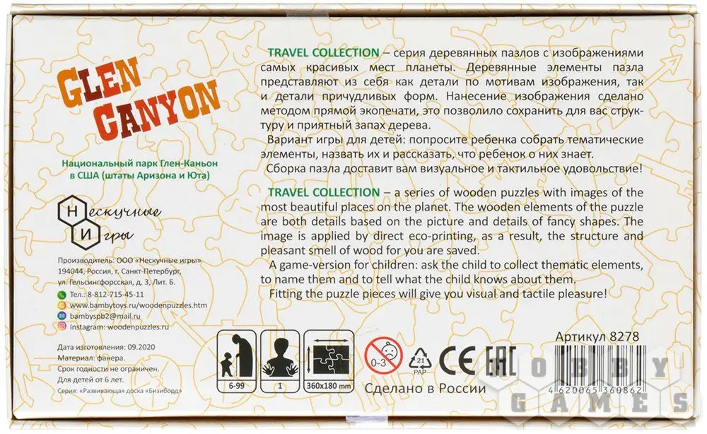 В небольшой коробке из серии Travel Collection вы найдёте деревянные элементы, складывающиеся в изображение одной из достопримечательностей мира. Это уникальные пазлы, которые сохраняют естественный запах дерева, сделаны методом прямой экопечати. Фигурные детали делают процесс игры интереснее, так как они, несмотря на то, что являются частью целого, становятся самодостаточными элементами, которые любопытно разглядывать по отдельности.