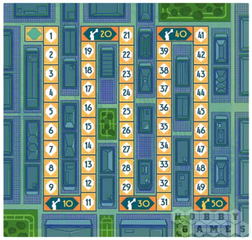В свой ход игрок перемещает архитектора на одну из локаций вокруг стройки или в здание мэрии, после чего выполняет действие выбранного места. Это может быть покупка карты улицы, активация уже построенных действий или получение денег. Ключевая часть игры – строительство опор и этажей небоскрёба. Размещая опоры на активном этаже, игроки получают очки и бонусы, а когда этаж полностью готов, его можно перекрыть новым уровнем. Эффекты этажей влияют на ход партии, меняя правила и открывая новые возможности для обоих соперников!