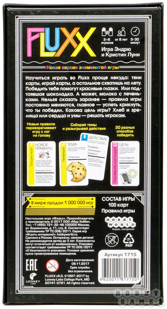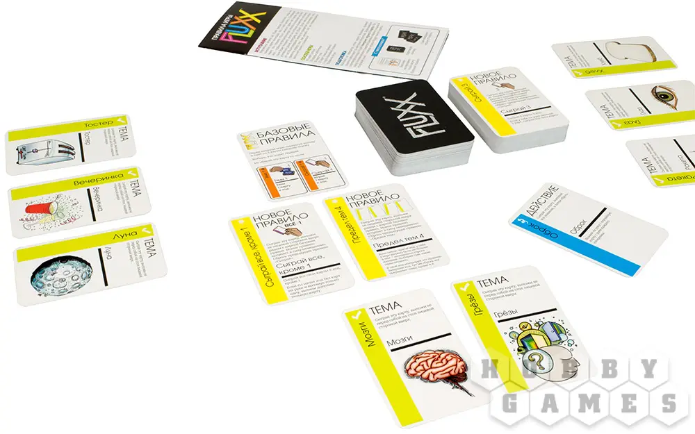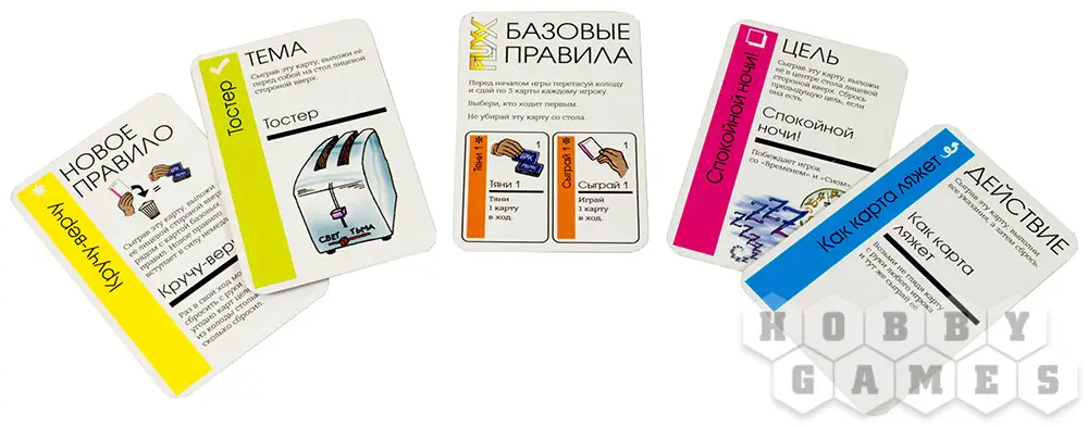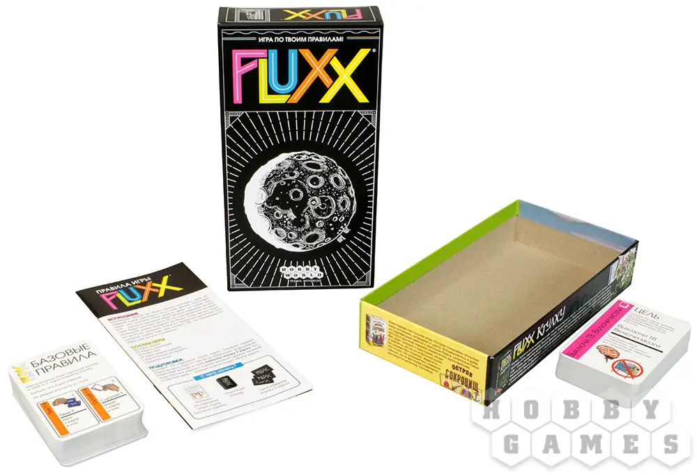 Настольная игра Fluxx – это карточная игра, в которой сыгранные карты сами определяют цель и задачи игры. Разыгрывая их различные свойства, вы можете изменить множество аспектов: как и сколько карт брать, как их разыгрывать и даже что, собственно, нужно сделать, чтобы победить?!